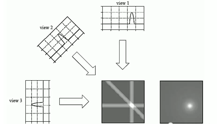 圖3 接受到的不同角度的信號進行反向投影重構