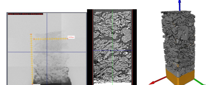X-ray CT 的另外一個重要應用就是材料的性能模擬。和一些仿真方法不同,X-ray CT 擁有對材料結構高準確度的還原,這就能讓研究者擺脫通過CAD 建模這樣的傳統(tǒng)路徑,直接運用真實的材料結構進行建模仿真,更加具有代表性和說服力,也可以和材料的其他電化學性能結合在一起進行分析,從而達到優(yōu)化結構,預測性能的目的。